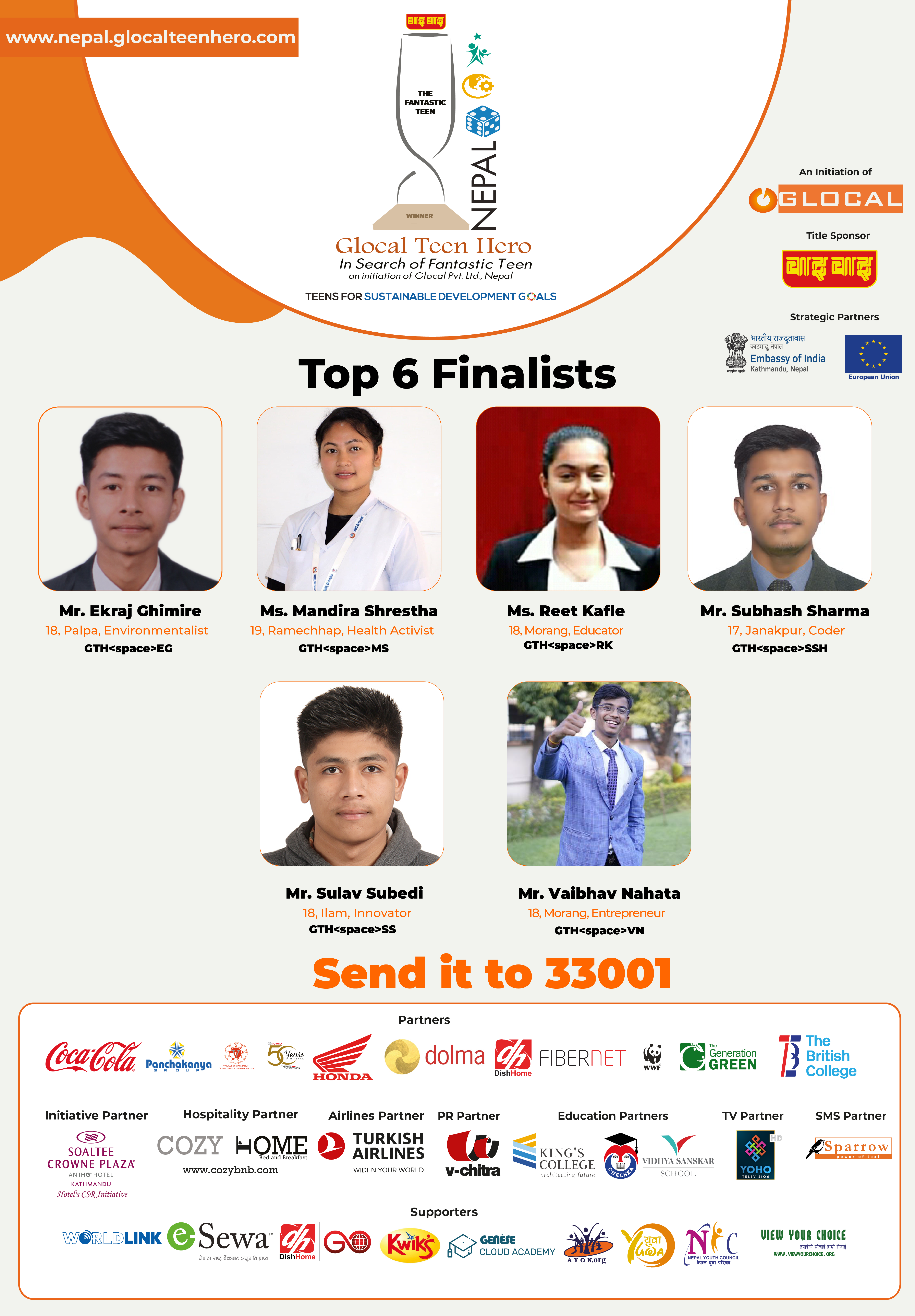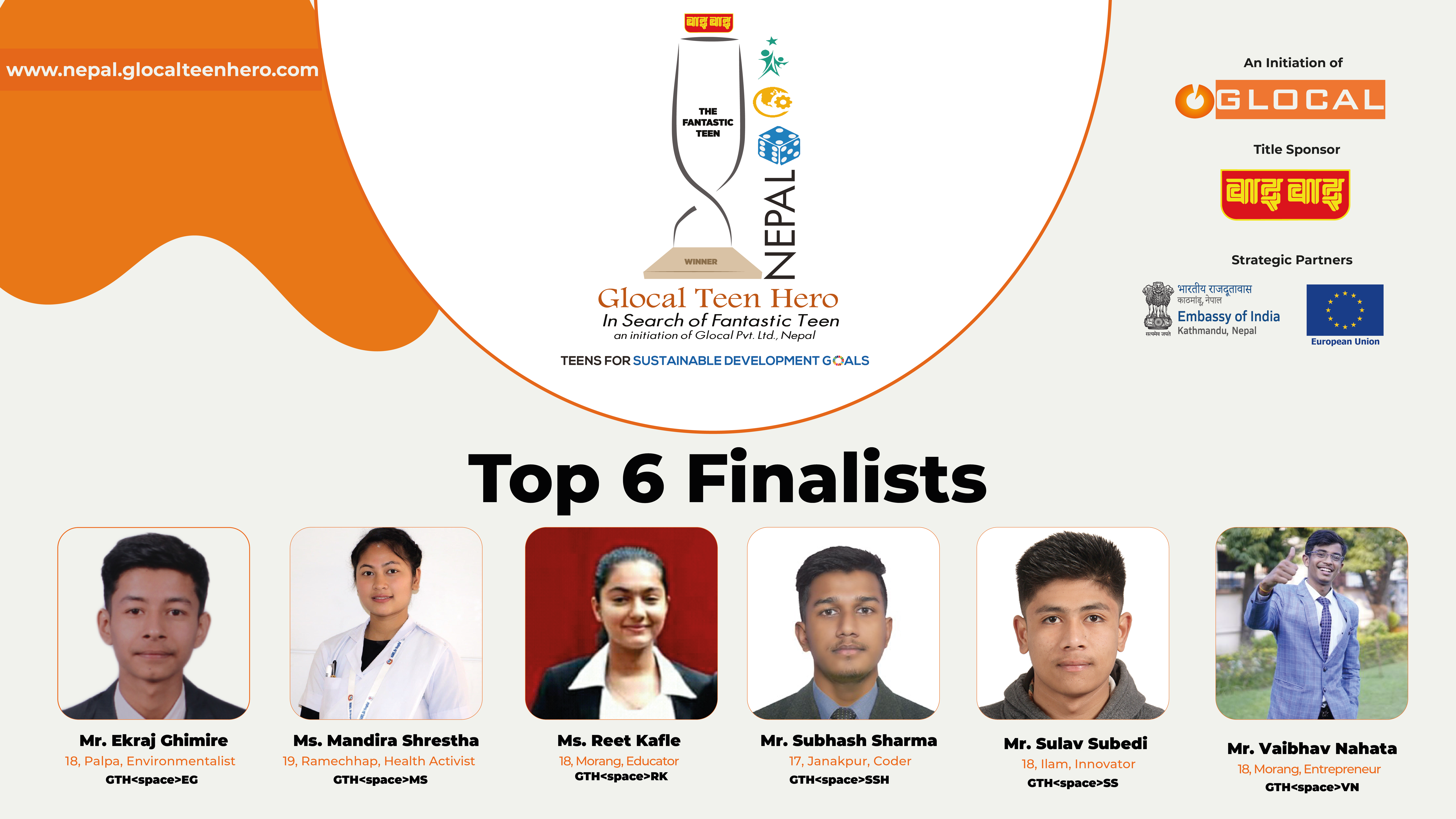 वाई वाईसंगको संयोजनमा ग्लोकल टीन हिरो नेपाल अन्तर्गत, अन्तिम ६ प्रतिस्पर्धीको नाम घोषणा