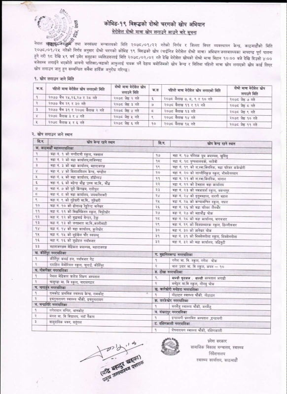 काठमाडौंको कुन ठाउँमा खोप लगाइँदैछ भन्नेबारेमा सूची तल उल्लेख गरिएको छ ।
