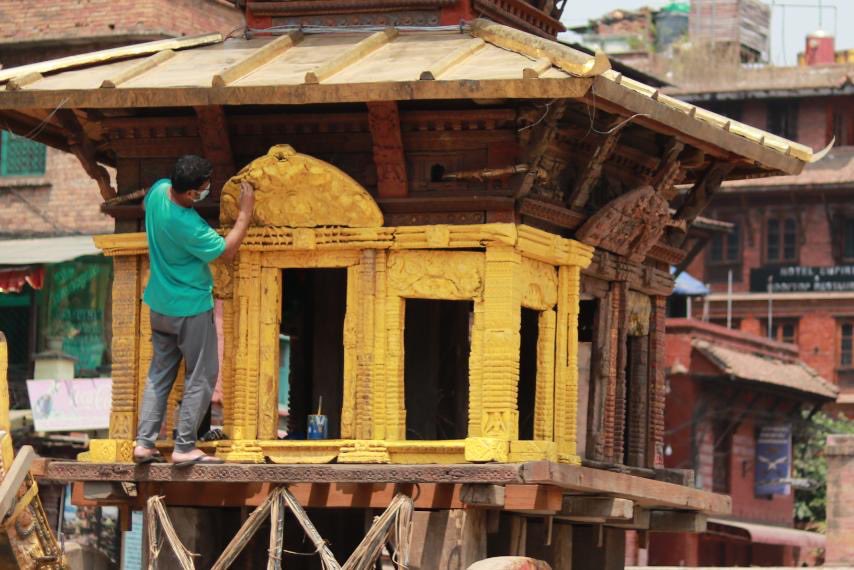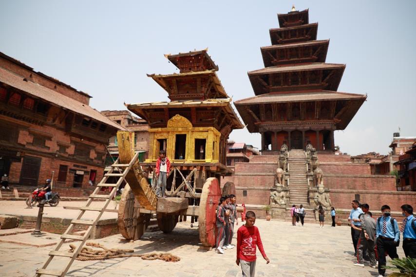 भक्तपुरको ऐतिहासिक बिस्का जात्राका लागि रथ तयार गरिँदै । काठमाडौं उपत्यकाका तीन जिल्ला भक्तपुर, ललितपुर र काठमाडौंका परम्परागत साँस्कृतिक जात्रामध्ये बिस्का जात्रा पनि एक हो । स्थानीय भाषामा बिस्का भनिने यो जात्रालाई अहिले बिस्केट भनेर चिनिन्छ । जात्राका लागि भक्तपुर दरवार क्षेत्रमा रहेको पाँच तले र भैरवनाथको मन्दिर प्रांगणमा अहिले रथ बनाइँदै छ । तीन तले प्यागोडा शैलीको भैरवनाथको रथ तानेर बिस्का जात्रा सुरु गरिन्छ । नयाँ वर्षको आगमनसँगै सुरु हुने बिस्का जात्रा आठ रात नौ दिनसम्म धुमधामसँग मनाइन्छ भने थिमिमा तीन दिन मनाइन्छ ।
