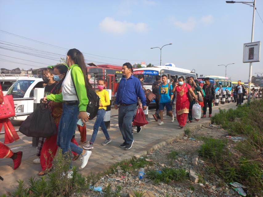 मुलुक स्थानीय तहको निर्वाचनमय भएसँगै काठमाडौं उपत्यकासहित सहरमा अस्थायी बसोबास गर्दै आएकाहरू मतदानका लागि गाउँघर हिँडन थालेका छन् । ३० वैशाखमा मतदान हुँदैछ । त्यसअघि विद्यालय बन्द हुनुका साथै मतदानका दिन सार्वजनिक बिदा परेपछि आममतदाता थातथलो लागेका हुन् । काठमाडौं उपत्यकाबाट बाहिरिने सवारीसाधन यात्रुले कोचाकोच हुने गरेका छन् । कोटेश्वर र कलंकी क्षेत्रबाट बाहिरिदै गरेकाहरुको दृष्य कैद गरेका छौं ।