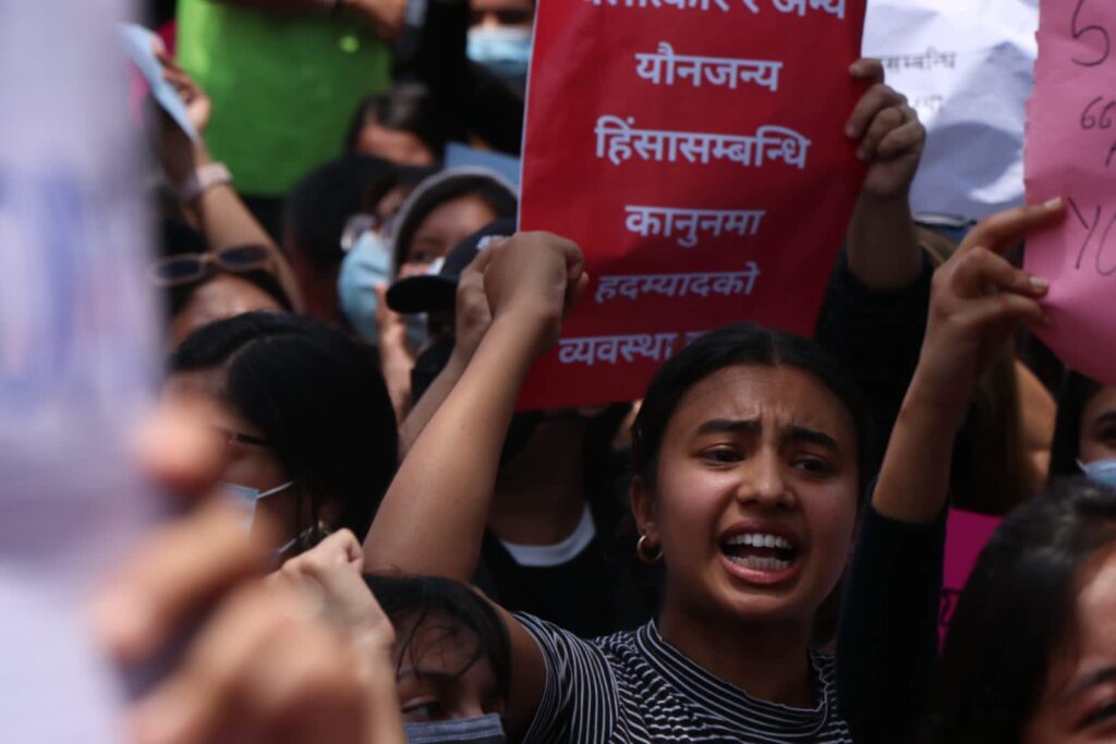 काठमाडाैं बलात्कारीलाई सजाय माग गर्दै माइतीघरमा महिलाले गरेको प्रदर्शन । एक युवतीले सामाजिक सञ्जालमा सौन्दर्य प्रतियोगिताको नाममा आफूमाथि बलात्कार भएको खुलासा गरेपछि महिलाहरूले प्रदर्शन गरेका हुन् ।