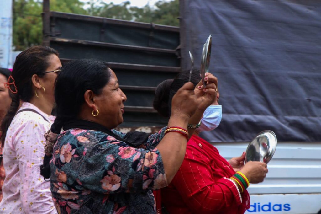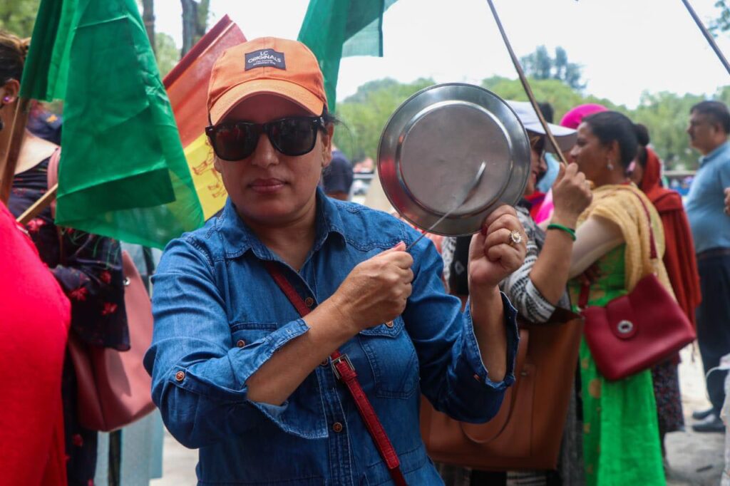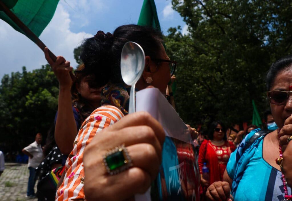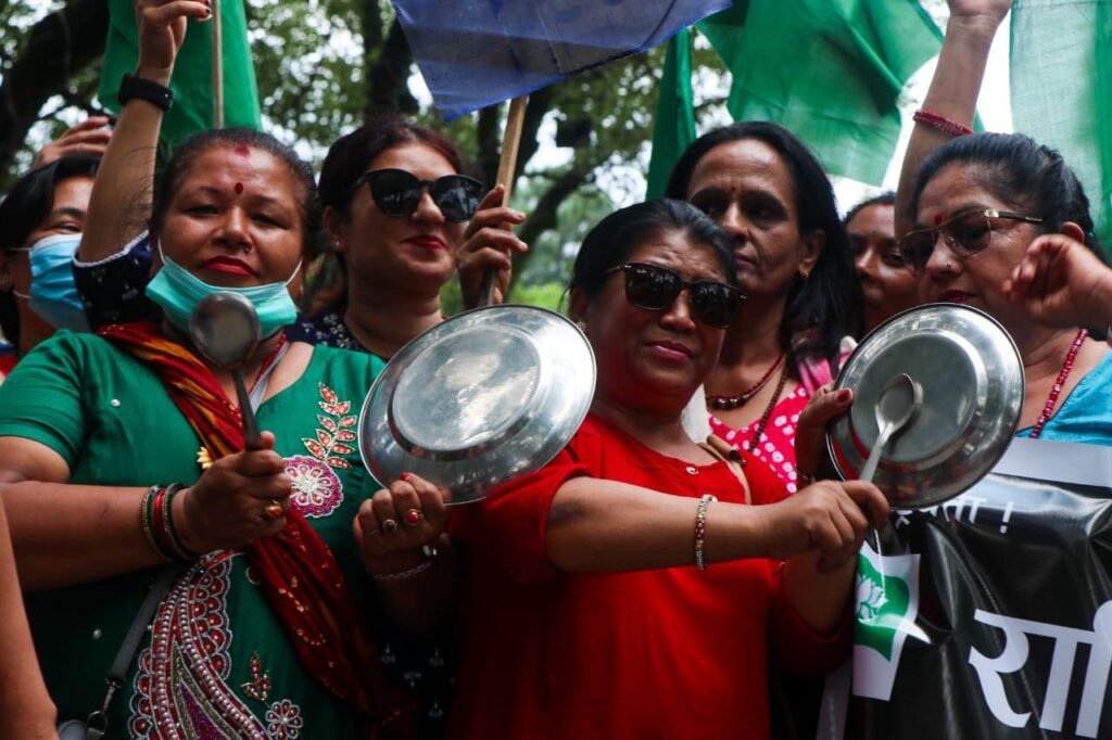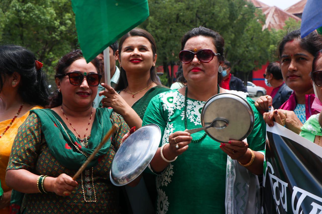 मूल्यवृद्धिविरूद्ध थाल ठटाएर प्रदर्शन (फाेटाेफिचर)