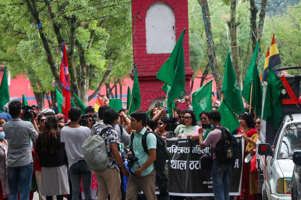 राप्रपा निकट राष्ट्रिय प्रजातान्त्रिक महिला संगठनले ‘नागरिकता विधेयक खारेजी गर, बढ्दो महँगी नियन्त्रण गर, राष्ट्रहित विपरीत सन्धि सम्झौता खारेजी गर’ लेखिएको वानरसहित जुलुस निकालेका थिए । पार्टी कार्यालयदेखि सुरु भएको जुलुस त्रिबेणीचोक पुगेर कोणसभामा पुगेर कोणसभामा परिणत भएको थियो । कोणसभालाई राप्रपाका अध्यक्ष राई, नगर कमिटी अध्यक्ष चन्द्रकुमारी राई तारा र प्रजातान्त्रिक महिला संगठनका संयोजक टिका खत्रीले सम्बोधन गरेका थिए ।