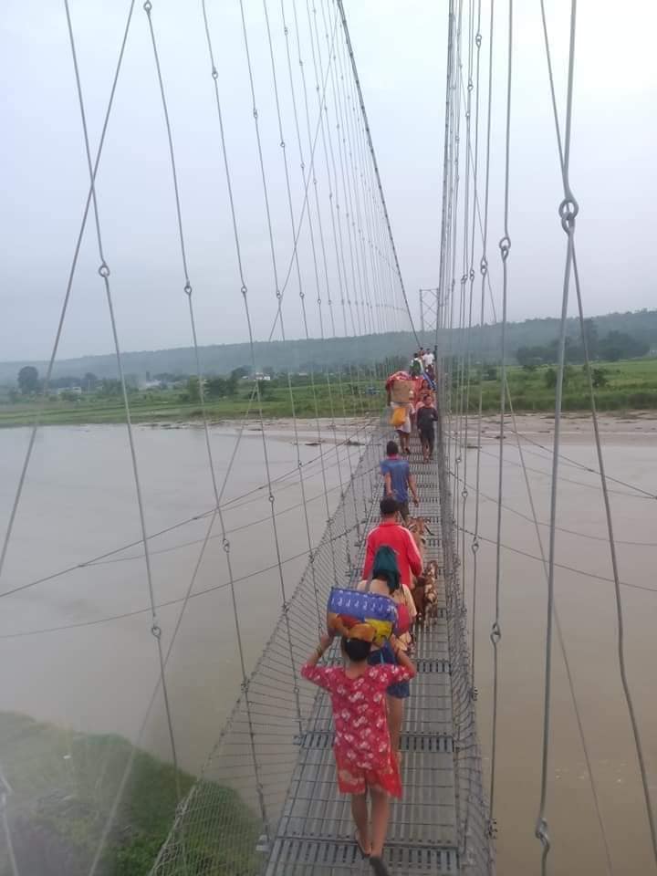अविरलको वर्षासँगै आएको बाढीले उदयपुरको बेलका नगरपालिका– ८ लाहुरे खोच डुम्रीबोटमा सप्तकोसी नदीको बाँध फुटेसँगै जोखिममा परेका मानिसलाई सुरक्षित स्थानमा सार्ने क्रम चलिरहेको छ ।
