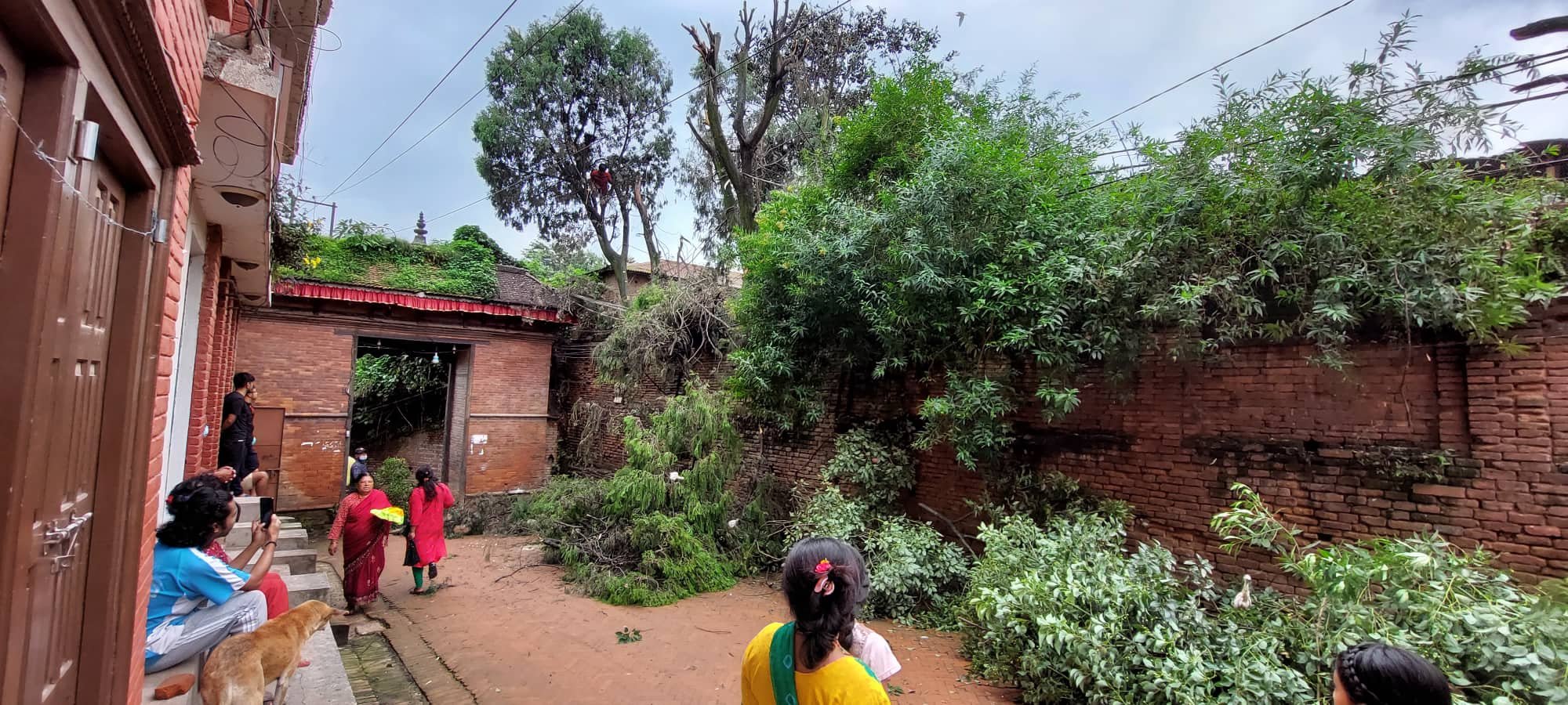 भक्तपुरेन्सको समूह फेसबुकका सञ्जयप्रसाद सुवालले राखेको पोष्टमा उनले ६१४ शब्दको दुःखद् घटना विवरण उल्लेख गरेका छन् । साथै उनले तस्बिर र भिडियामो पनि पोष्ट गरेका छन् । यही घटनाको रोइकराई भाव अरुले पनि सामाजिक सञ्चालमा राखेका छन् । स्टाटसमा पोष्ट गर्नेहरुले घटना देखेपछि प्रतिवाद पनि गर्न पुगेको, तर रुख काटने ठेक्का पाएका मजदुरले कुनै वास्ता नगरेको घटना विवरण पनि राखेका छन् । उनीहरूका अनुसार चराको दिसाका कारण यो ठाउँंमा गन्हाएको र त्यही कारण स्थानीयको अनुरोधमा स्कुलले रुख काट्न लगाएको हो ।