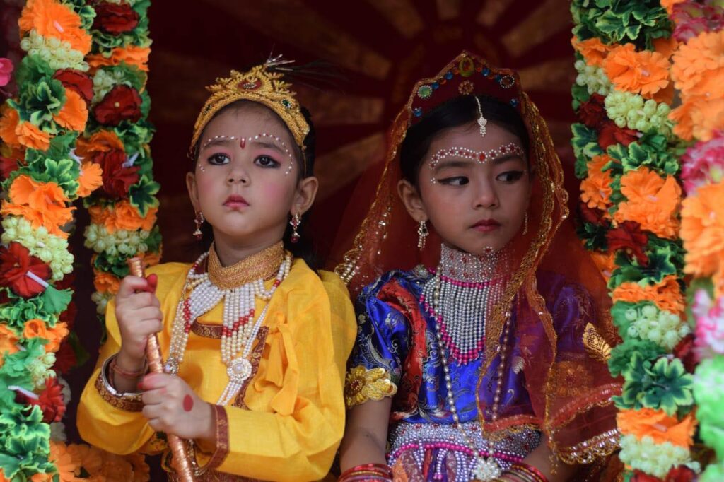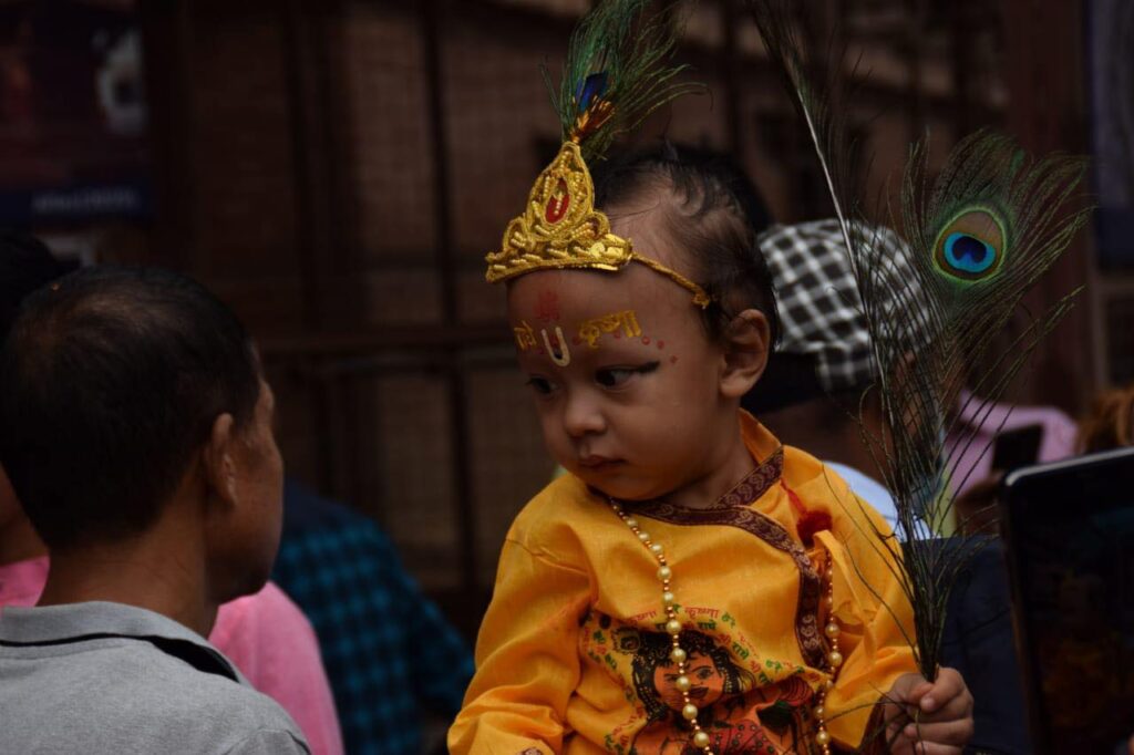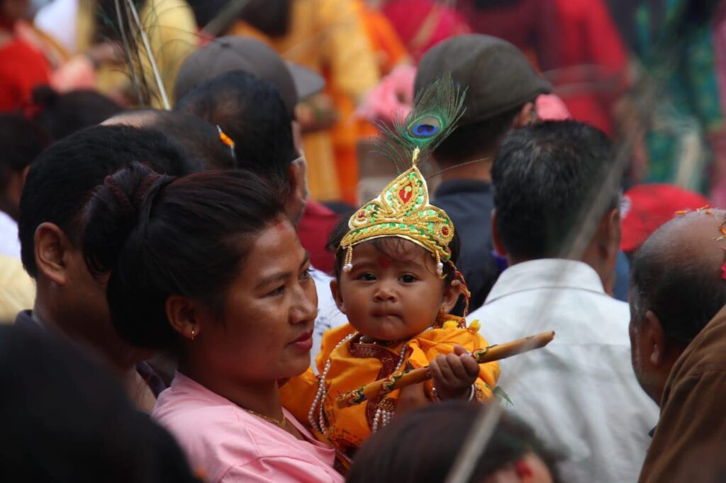 पाटन कृष्ण मन्दिरमा ‘बालकृष्ण’हरू र दर्शनार्थी