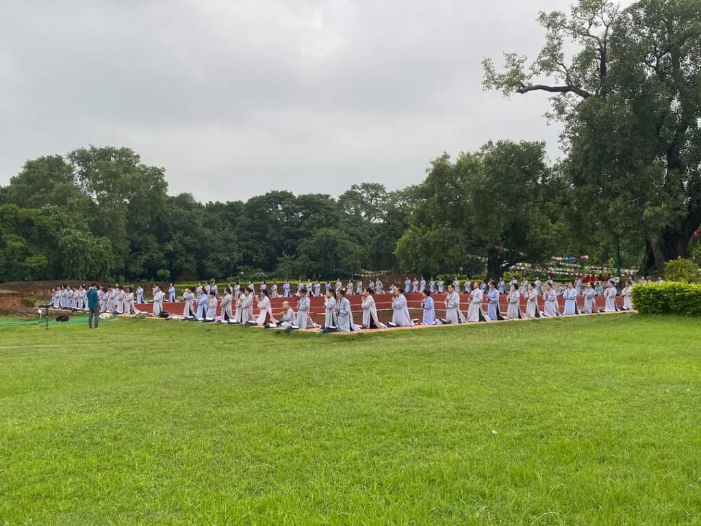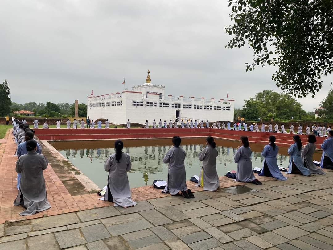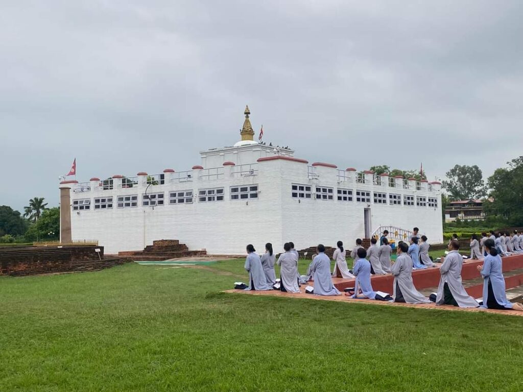 बुद्ध जन्मस्थल लुम्बिनीकाे मायादेवी मन्दिर परिसरमा प्रार्थना गर्दै भियतनामी