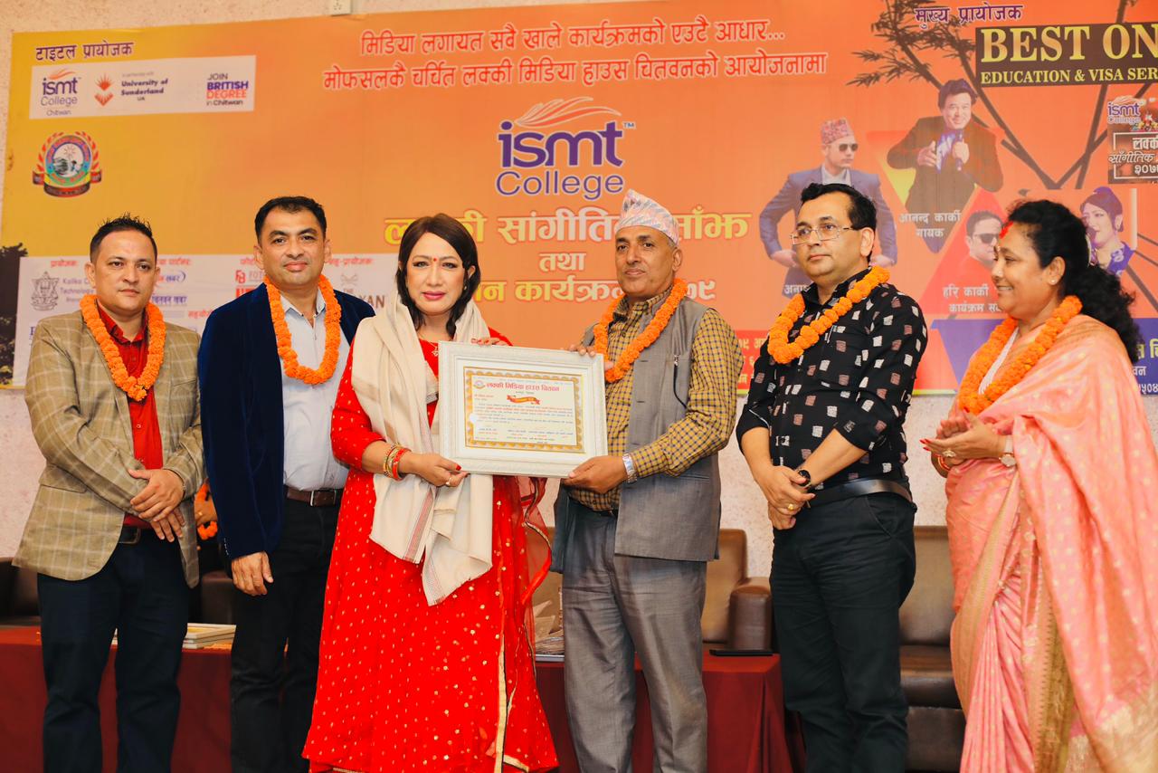 चितवन, २४ असोज । मोफसलकाे लक्की मिडिया हाउस चितवनले आइएसएमटी सांगीतिक साँझमार्फत् कलाकारहरुलाई सम्मान गरेको छ ।