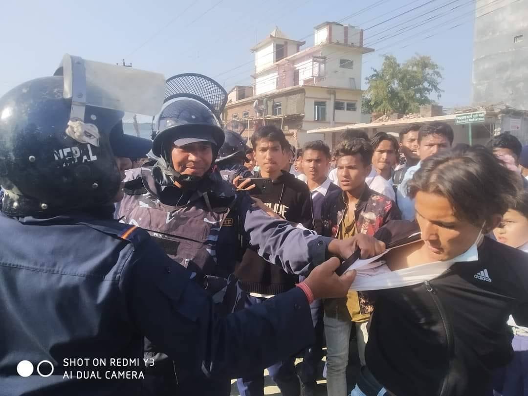 धनगढीमा प्रहरी ज्यादतीः विद्यार्थीमाथि दमन, छात्राले लगाएको कपडा च्यातियो