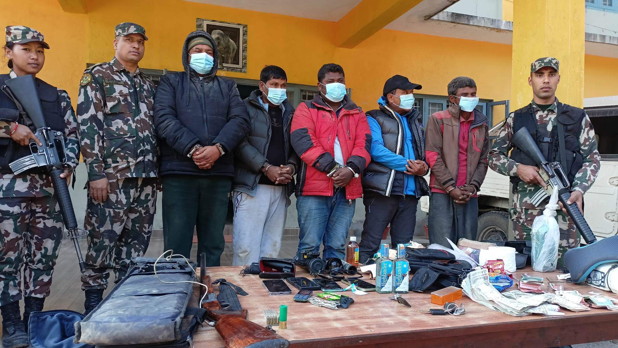 निकुञ्जमा वन्यजन्तुकाे सिकार गर्ने पाँचजना पक्राउ